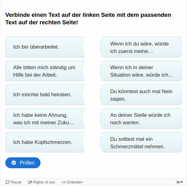 Ratschläge und Hinweise - Konjunktiv II - Präsens | Zuordnungen (1)