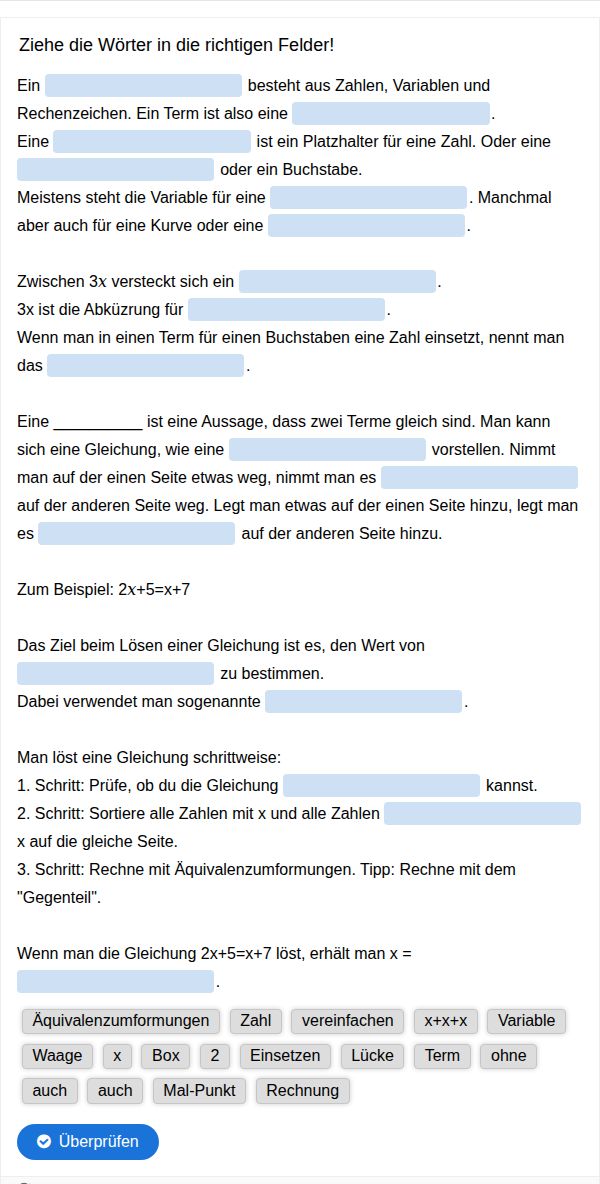 Merktext Variablen, Terme, Gleichungen